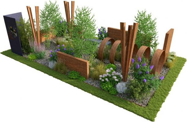 The steel structures on the garden are being designed by sculptor Simon Probyn and walls loaned by The Pot Company. The steel structure will sit on concrete footings being donated by Easymix Concrete.