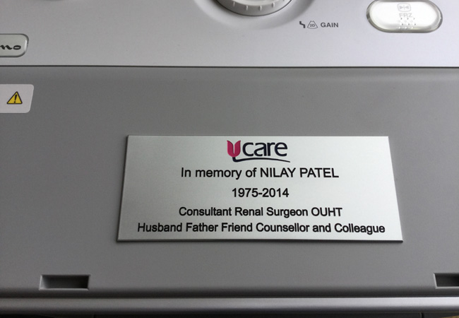 As Nilay was instrumental in helping David Cranston and Mark Sullivan set up Oxford as a National referral centre for complex renal surgery, it was decided to use £30,000 of the money raised to purchase a scanner to use for complex renal surgery. Previously there had not been access to a scanner between 5pm and 8am, and the first few hours after the transplant are a critical time as the artery and veins are at risk of thrombosis and blocking.