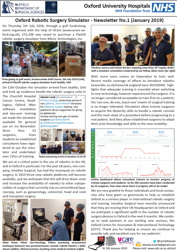 We are very grateful to those individuals and local companies who have given so generously to help us establish Oxford as a serious player in international robotic surgery and training.
